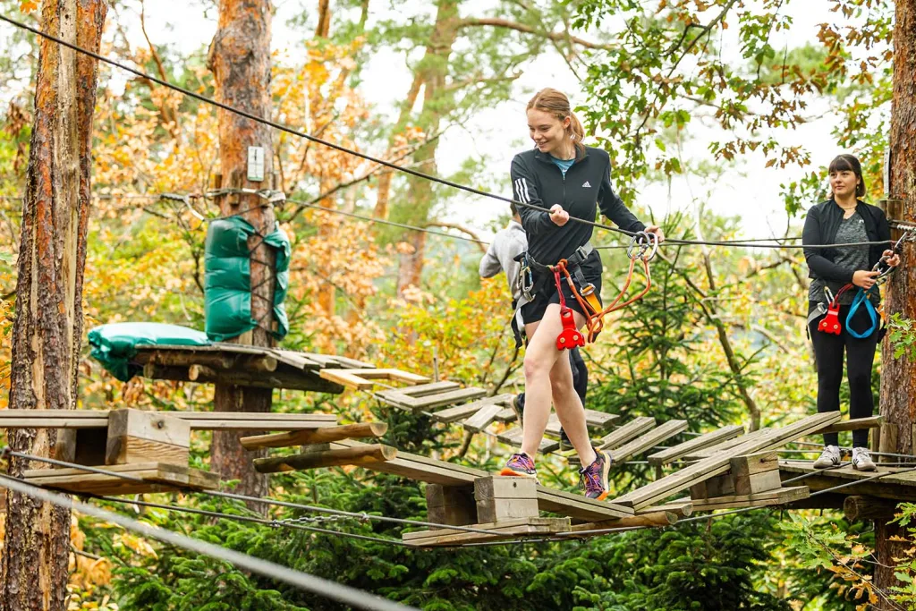 Le système d’accroche en Ligne de Vie Continue (les participants reste accroché tous le long de l’activité) vous permet d’évoluer sur les parcours en assurant votre sécurité à 100%. L’Accrobranche est une activité accessible à tous, Fun et sensations garantis !